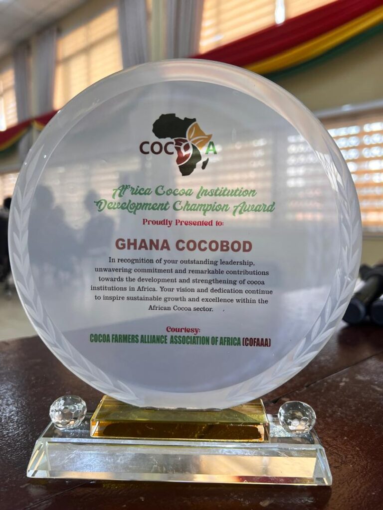 Ghana’s COCOBOD, Nigeria’s NCMC, Cameroon’s ONCC–NCBB, and Côte d’Ivoire’s Conseil du Café-Cacao were honoured with the Africa Cocoa Institution Development Champion Award for their leadership and innovation in promoting sustainable cocoa policies and sustaining Africa cocoa production leadership despite prevailing challenges in the industry.